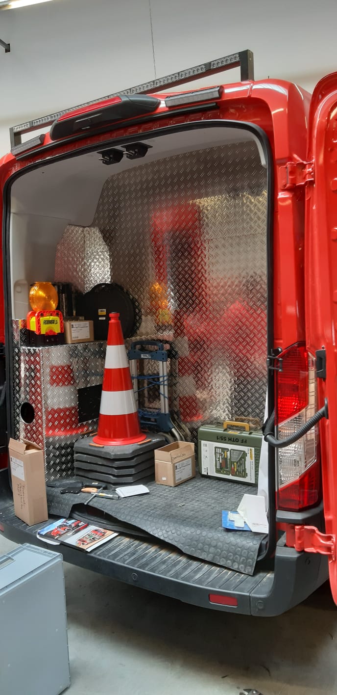 Der Aufbau unseres neuen Mehrzweckfahrzeugs ist mittlerweile in vollem Gange. In der vergangenen Woche besuchten zwei unserer Kameraden den Aufbauhersteller um das restliche Material für den Zusammenbau mitzubringen und die letzten Fragen zu klären. Ein Großteil der Arbeiten ist bereits erledigt. Die Sondersignalanlage wurde verbaut, die Warntafel angebracht und auch das Riffelblech wurde bereits eingebaut.